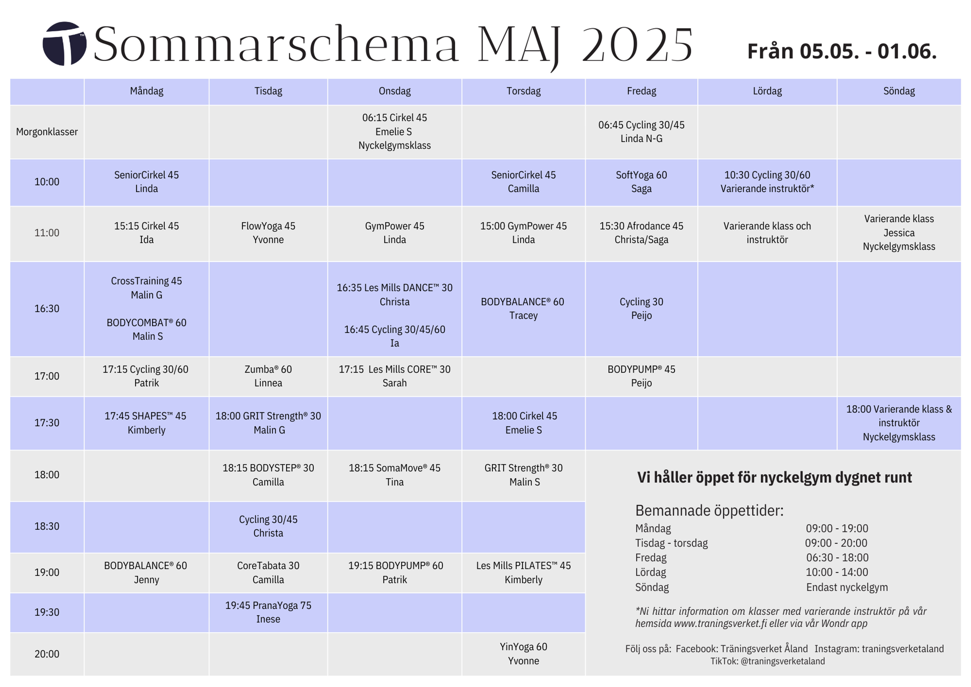 Se hela veckan här| Tidpunkt | Pass | Instruktör | Längd |